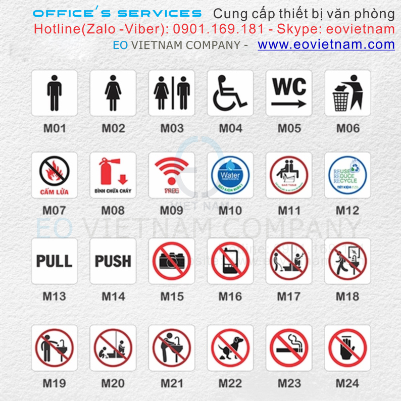 Bảng báo – biển chỉ dẫn – icon mica 95 x 95 mm thông dụng nơi văn phòng. Nhận thiết kế, in ấn biển báo, biển chỉ dẫn theo yêu cầu với số lượng linh hoạt