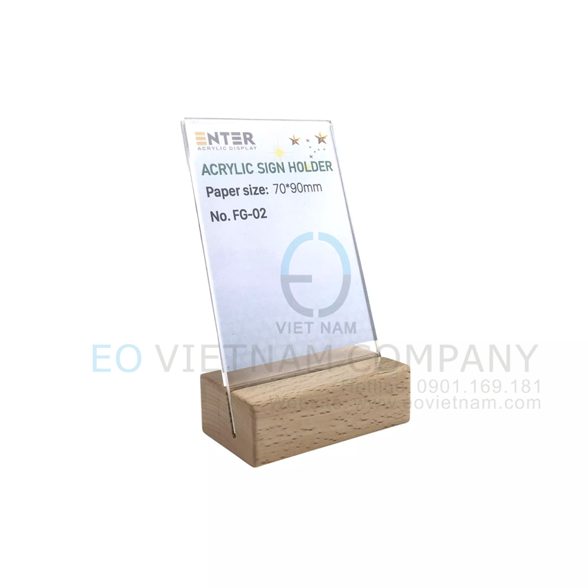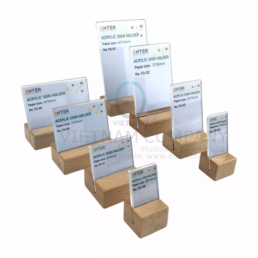 Bảng chức danh – bảng menu – bảng thông tin đế gỗ được thiết kế kết hợp giữa đế bằng chất liệu gỗ tự nhiên thân thiệt với môi trường và thân bằng mica cao cấp trong suốt, tạo nên sự đơn giản tinh tế mà sang trọng trong văn phòng, showroom của quí khách hàng.