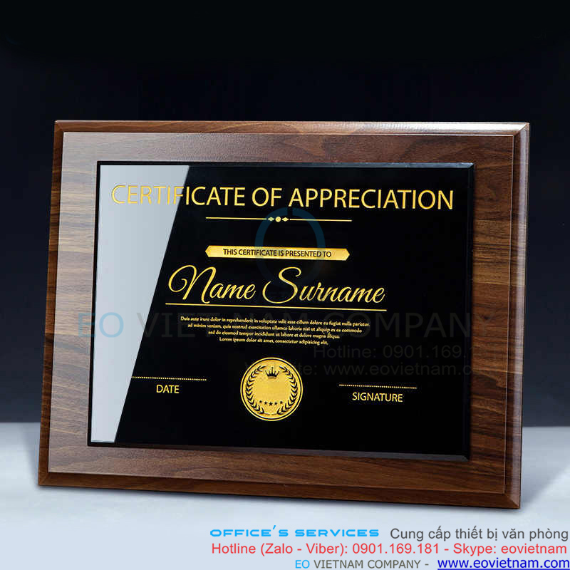 Bảng vinh danh gỗ cao cấp có 3 kích thước phổ thông 15 x 20 cm, 24 x 34 cm, 30 x 40 cm