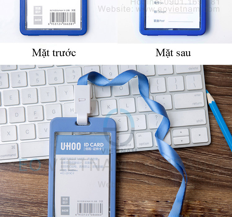 Bao thẻ nhân viên UHOO 6638 là dòng bao thẻ nhựa phổ biến với thiết kế 2 mặt trong suốt dạng đứng, giúp hiển thị rõ thông tin và bảo vệ thẻ hiệu quả trong quá trình sử dụng.
