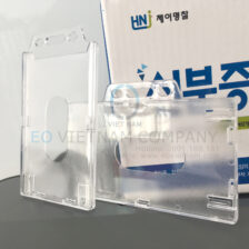 Bao thẻ nhân viên mica Hàn Quốc cao cấp – HNJ sử dụng chất liệu mica, thiết kế theo phong cách cổ điển, trong suốt giúp hiển thị thông tin của thẻ nhân viên 1 cách đầy đủ, rõ ràng nhất. Với thiết kế vuông vức, vật liệu mica trong suốt cứng cáp tạo nên 1 sản phẩm mang vóc dáng công nghiệp, mạnh mẻ, mặt trước mặt bóng, mặt sau mờ, là một sản phẩm có độ bền cao trong quá trình sử dụng.