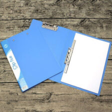 Sản phẩm được ép tấm bằng bìa cứng, 2 mặt đều phủ lớp simily chắc chắn, còng bật bên hông giúp đóng mở file nhanh chóng và thanh kẹp chặn giấy.