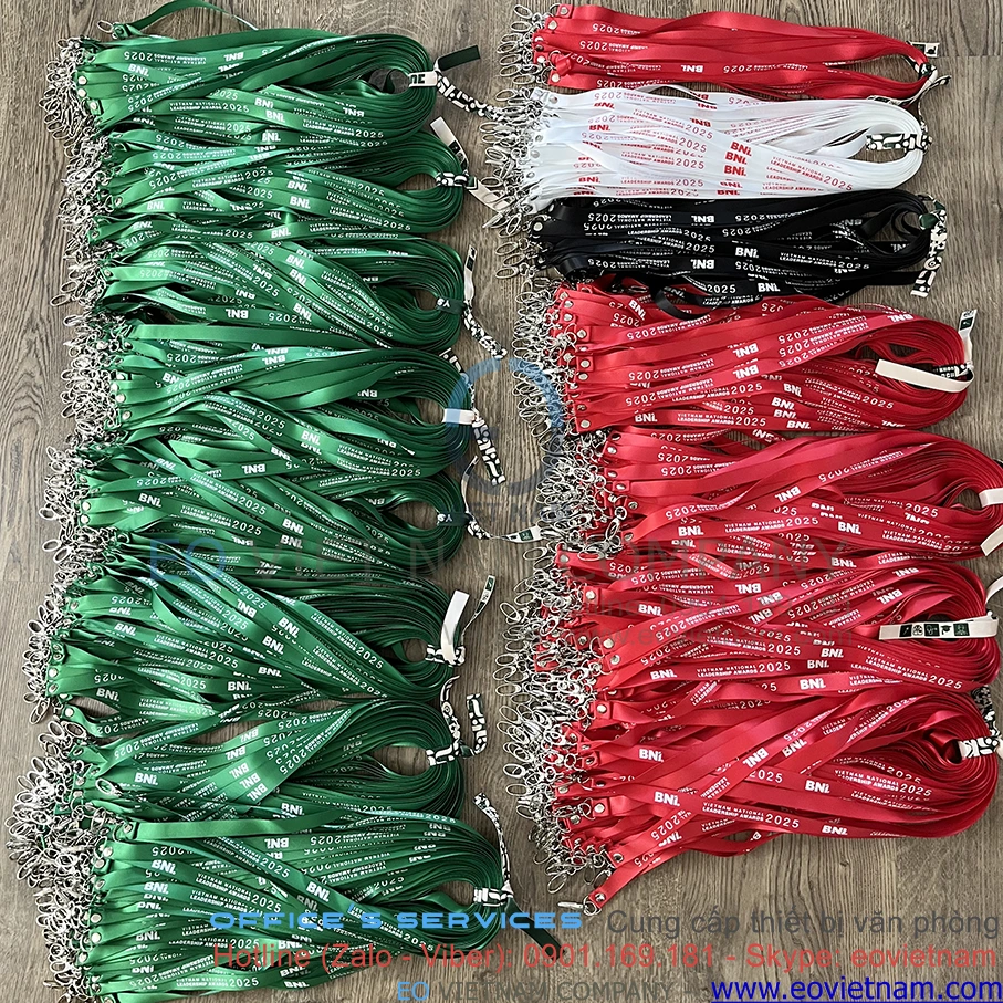 Sản phẩm có nhiều màu sắc đa dạng, dễ dàng lựa chọn theo nhu cầu sử dụng hoặc nhận diện thương hiệu. Đây là lựa chọn phù hợp cho các đơn vị cần dây đeo thẻ nhỏ gọn – tiện dụng – chi phí hợp lý.
