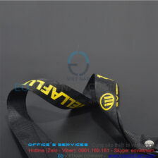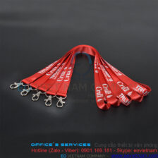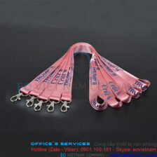 Dây đeo thẻ in cao su nổi theo yêu cầu sử dụng móc khóa sắt xoay kết hợp với dây đeo chất liệu lụa dệt mịn với bản rộng 1.5cm – 2.0cm với logo được in cao su nổi sắc nét được đánh giá là một sản phẩm cao cấp, chất lượng bền, đẹp được sử dụng rộng rãi trong môi tường công sở, chuổi cửa hàng kinh doanh, nhằm quảng bá và khẳng định thương hiệu của công ty đến với tất cả các đối tượng khách hàng.