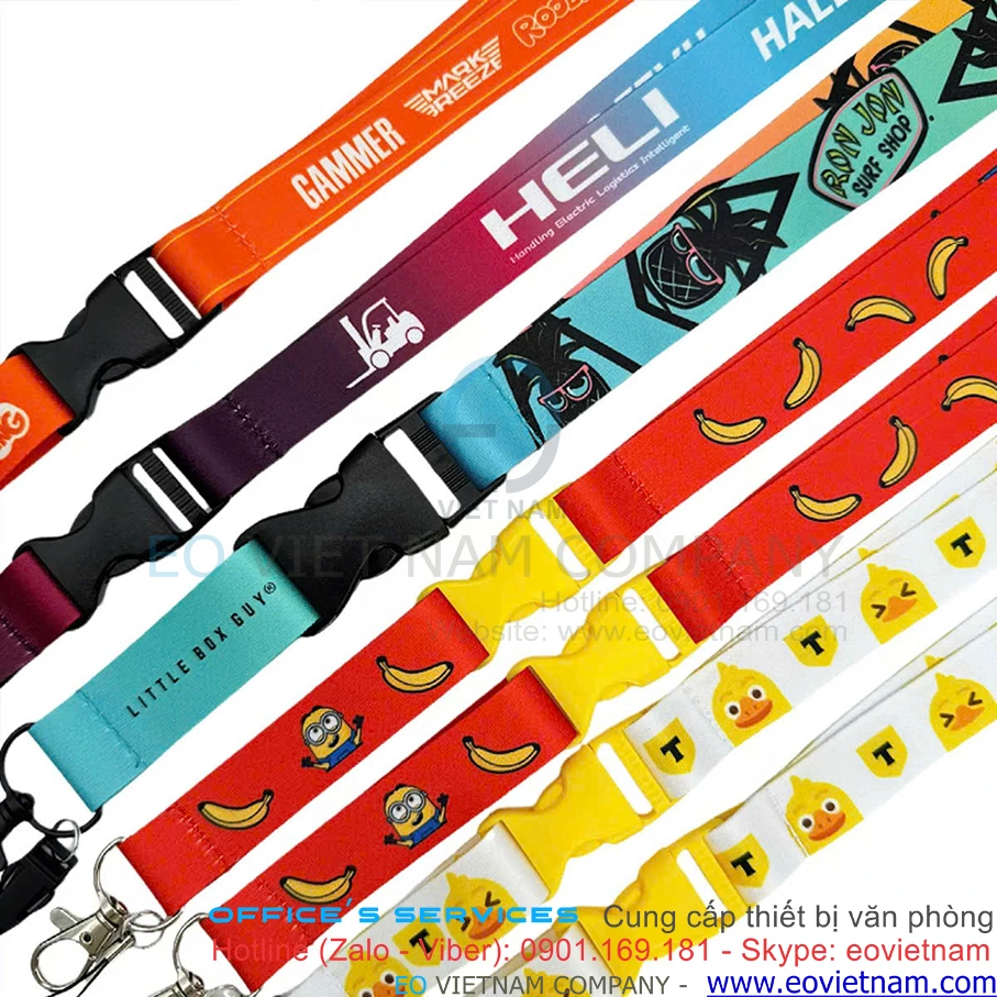Sản phẩm sử dụng công nghệ in chuyển nhiệt hiện đại, cho phép in logo, hình ảnh hoặc thông tin thương hiệu với độ chi tiết cao và màu sắc sống động. Đặc biệt, hình in có thể phủ toàn bộ bề mặt dây, không bị giới hạn màu sắc, giúp doanh nghiệp dễ dàng thể hiện nhận diện thương hiệu một cách chuyên nghiệp.