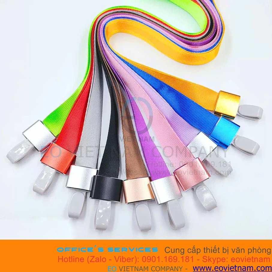Sản phẩm sử dụng dây chất liệu dây lụa hoặc satin, cho bề mặt mềm mại, thoải mái khi đeo và khả năng hiển thị logo rõ nét. Tùy theo nhu cầu, có thể áp dụng in lụa (giá tốt) hoặc in chuyển nhiệt (hình ảnh sắc nét, nhiều màu).