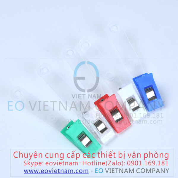 Các loại kẹp đeo thẻ nhân viên, sinh viên cũng là một trong các sản phẩm mà Công ty EO Việt Nam cung cấp. Các loại kẹp đeo thẻ, kẹp bao thẻ nhân viên được sản xuất bằng nhựa PVC an toàn, đảm bảo các tiêu chuẩn về độ bền, an toàn cho người sử dụng, mẫu mã đa dạng, đáp ứng mọi nhu cầu của quí khách hàng.Sản phẩm kep đeo thẻ nhân viên Công ty cung cấp được sản xuất theo dây chuyền công nghiệp, hàng loạt nên giá cực rẻ.