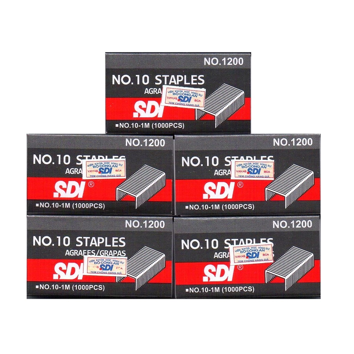 Các kích cỡ thông dụng: – Kim bấm số 10 SDI 1200 (20 hộp nhỏ/hộp lớn), kim bấm tối đa 20 tờ.