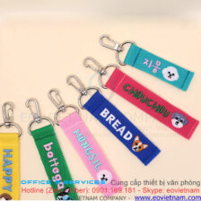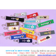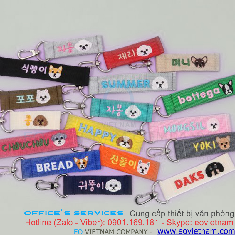 Móc khóa dây vải thêu logo phong cách Hàn Quốc sử dụng chất liêu dây vải polyester, hình thức thêu logo cao cấp, nội dung logo linh hoạt, tạo ra sản phẩm có tính thẩm mỹ cao.
