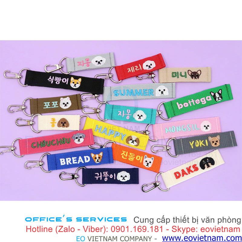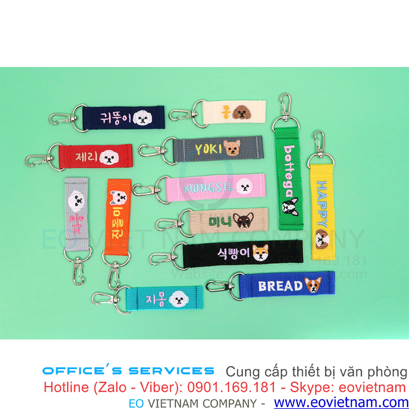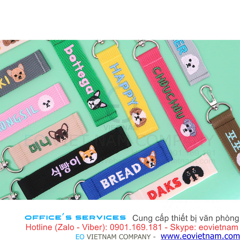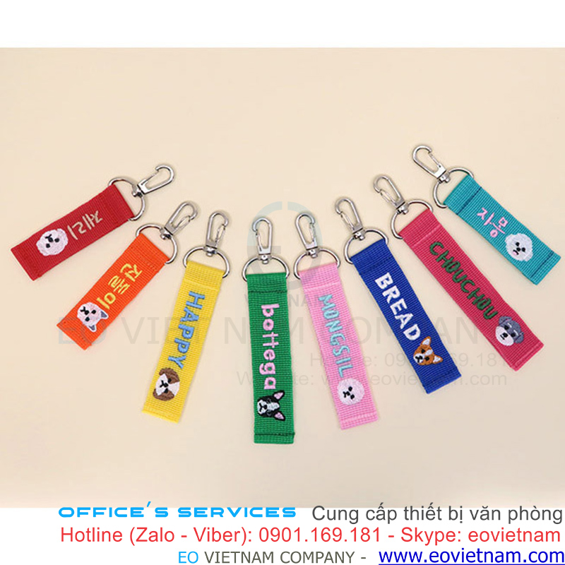 Móc khóa dây vải thêu logo phong cách Hàn Quốc sử dụng chất liêu dây vải polyester, hình thức thêu logo cao cấp, nội dung logo linh hoạt, tạo ra sản phẩm có tính thẩm mỹ cao.