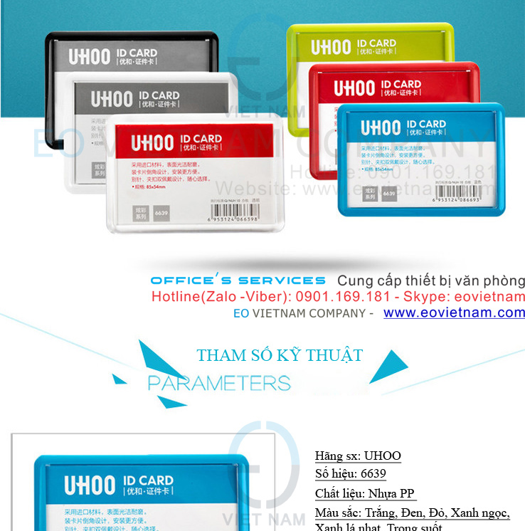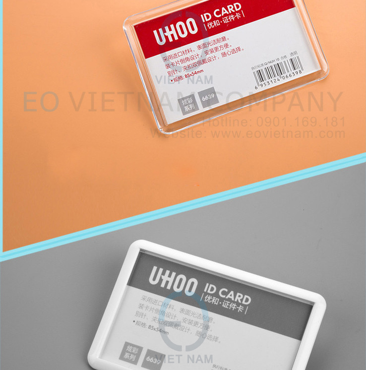 Theo danh mục sản phẩm của EO VIET NAM, dòng thẻ UHOO 6639 thuộc nhóm thẻ cài áo phổ thông, có giá thành thấp nhưng đáp ứng tốt nhu cầu sử dụng số lượng lớn
