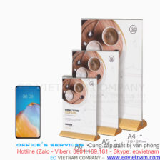 Bảng thông tin để bàn đế gỗ – Bảng menu đế gỗ cao cấp